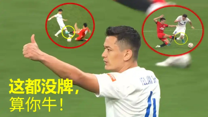 再看张琳芃这个飞铲对手脚腕(下图),最多也只是黄牌一张......现在稍微严一点他们就不乐意了,就开始大呼小叫要“尺度统一”了。